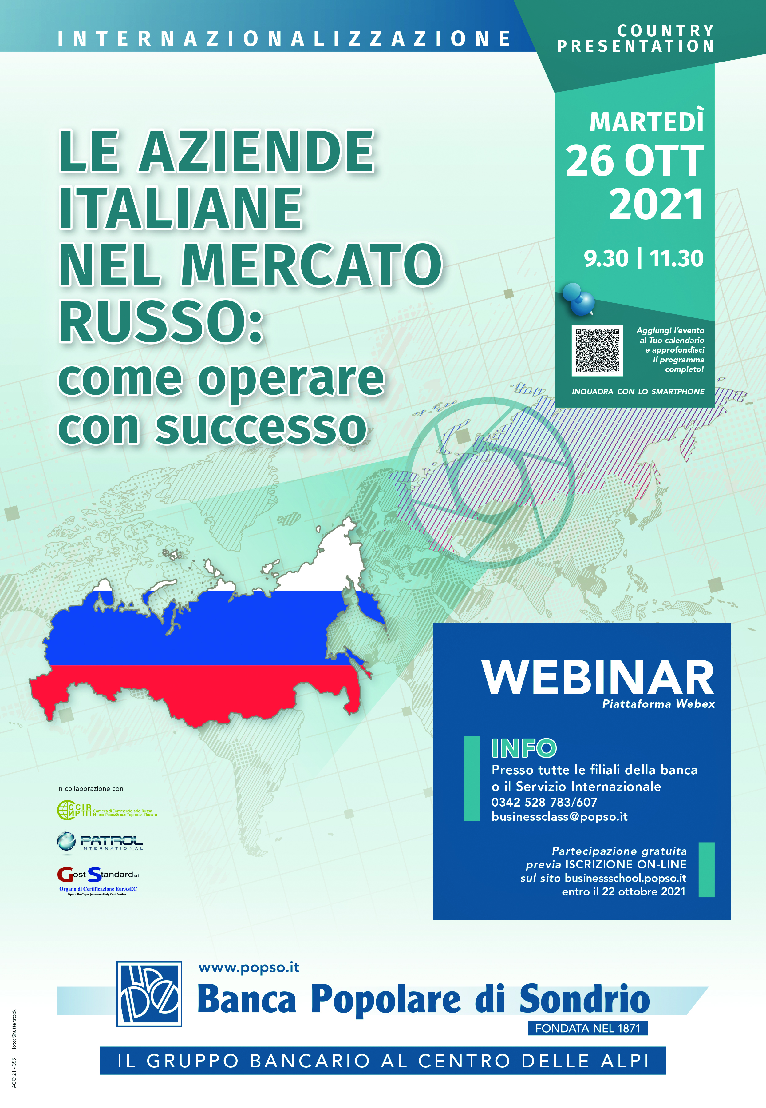 La Banca Popolare di Sondrio organizza un webinar dedicato alle strategie più efficaci da adottare per le aziende italiane che vogliano operare con successo nel mercato russo.