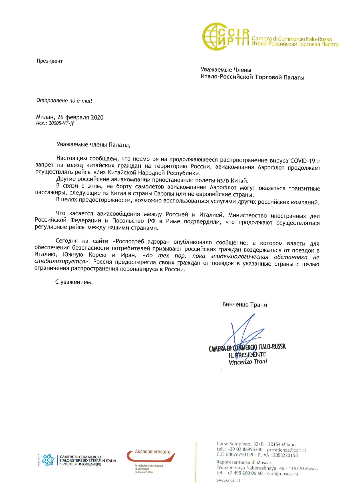 Итало-Российская Торговая Палата сообщает, что были приняты ограничительные меры в отношении граждан, прибывающих в Россию из Италии.